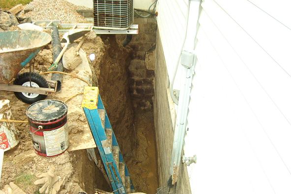 Waterproof lower portion of wall and install filter fabric and 4" perforated drainage pipe: