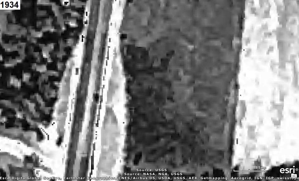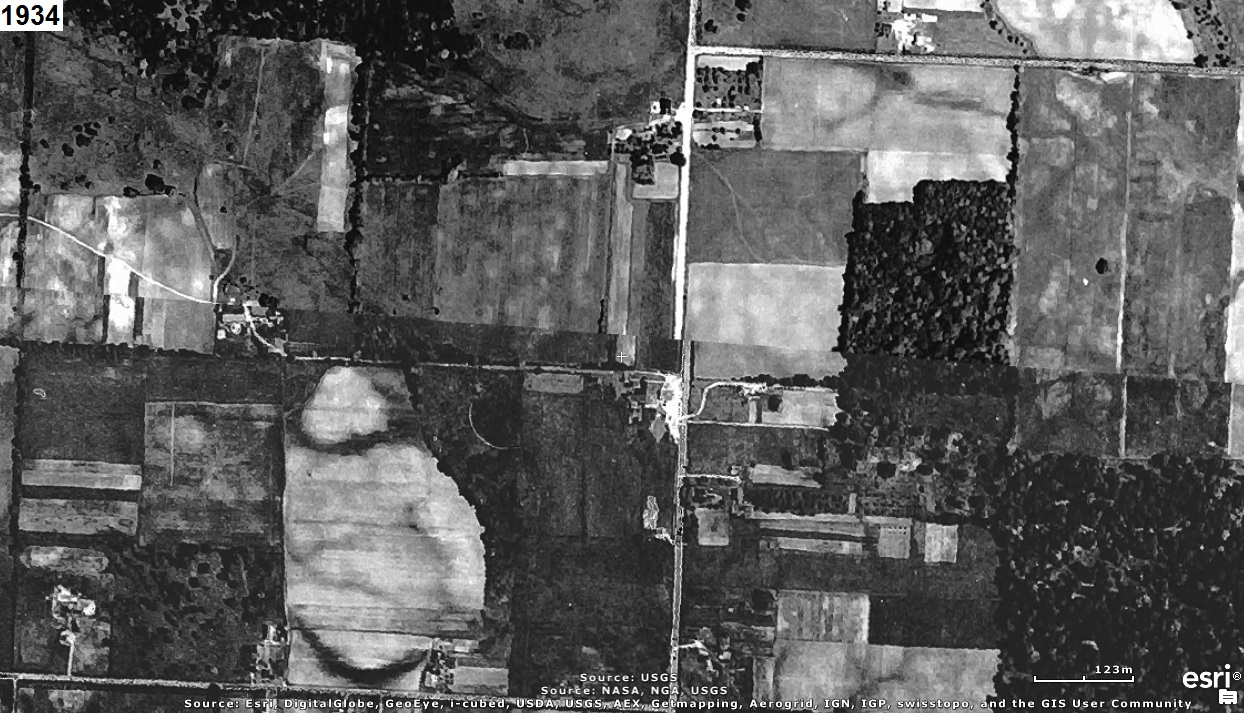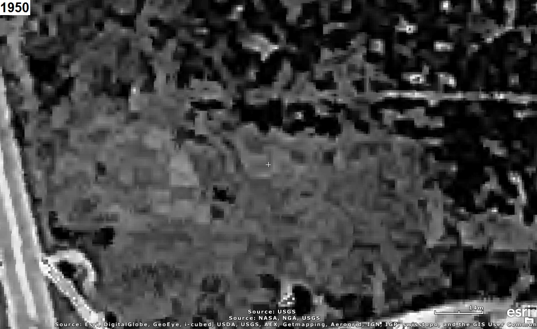 Who can tell us what was once located precisely at the red marker in the aerial photograph(s) below?