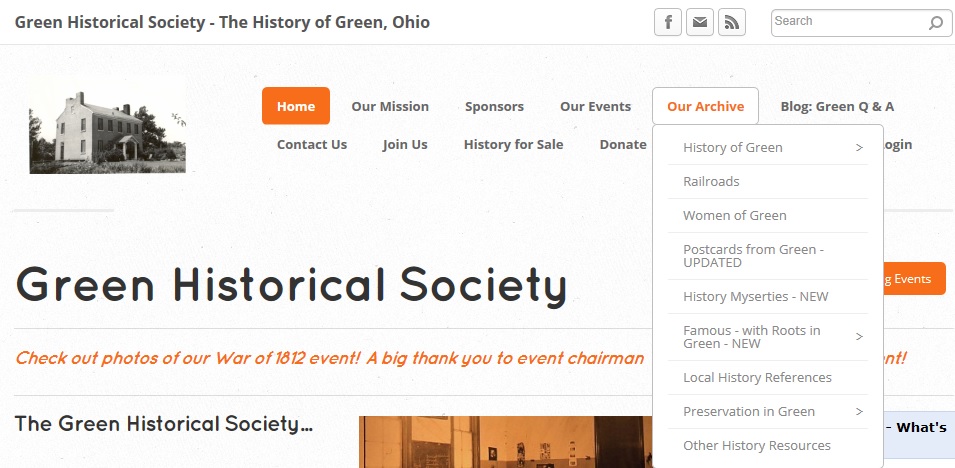 Green Historical Society:Your Internet web site entitled ‘Green Historical Society – The History of Green, Ohio’ is greatly appreciated.