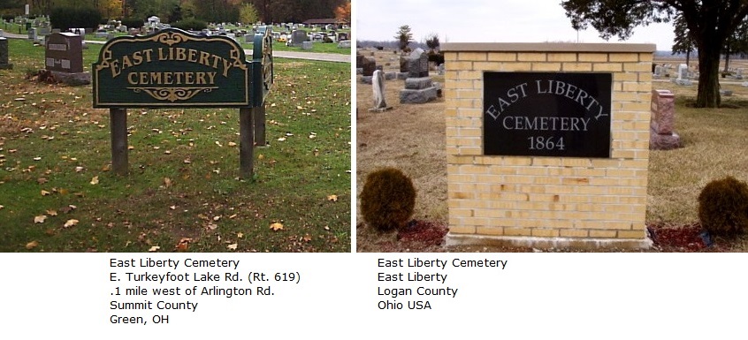 Surely, visitors to your web site assume that the ‘West Section of East Liberty Cemetery’, as written on that old photo, is referring to the East Liberty Cemetery in Green, Ohio.