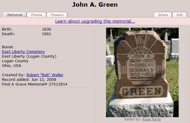 However, both 'GREEN' and 'LANE' are at the East Liberty Cemetery in East Liberty, Ohio as shown below: