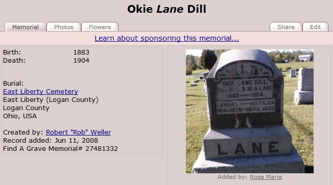 The only 'GREEN' at the East Liberty Cemetery in Green, Ohio is for Bessie Green Abbott, but no photo is available of that stone. Evidently, there is no 'LANE' at that cemetery.