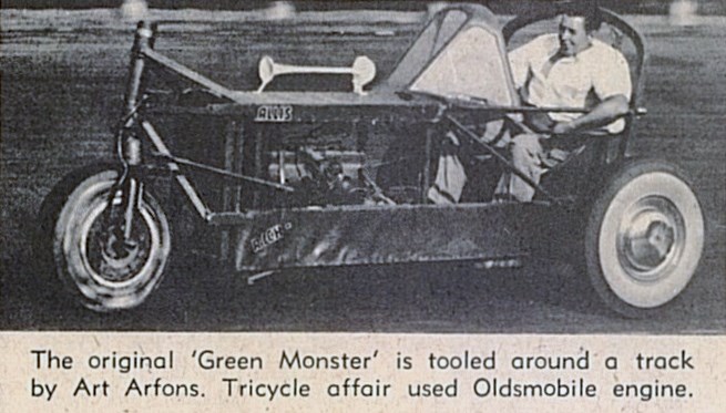 - Green Monster 1 was a three-wheeled dragster. The photo in the article shows a vehicle having at least 4 wheels.