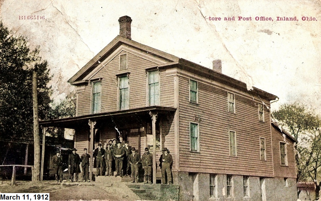 the building and surrounding terrain in the Inland Store and Post Office Post Card below,