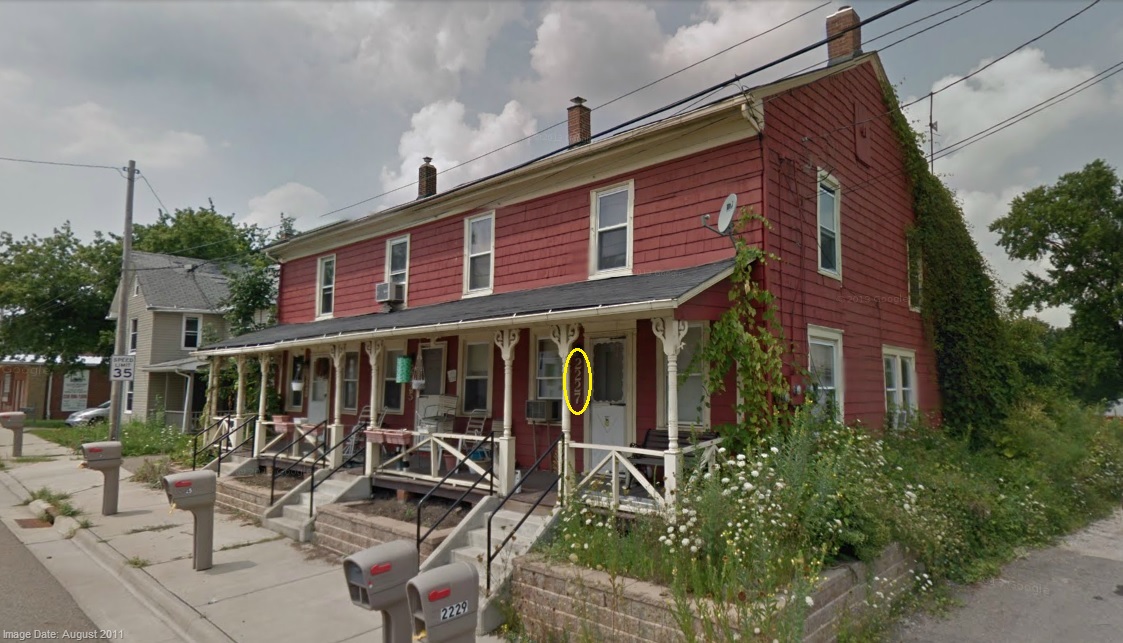 The red circles show the unique roof line of the house two doors down, which existed then
