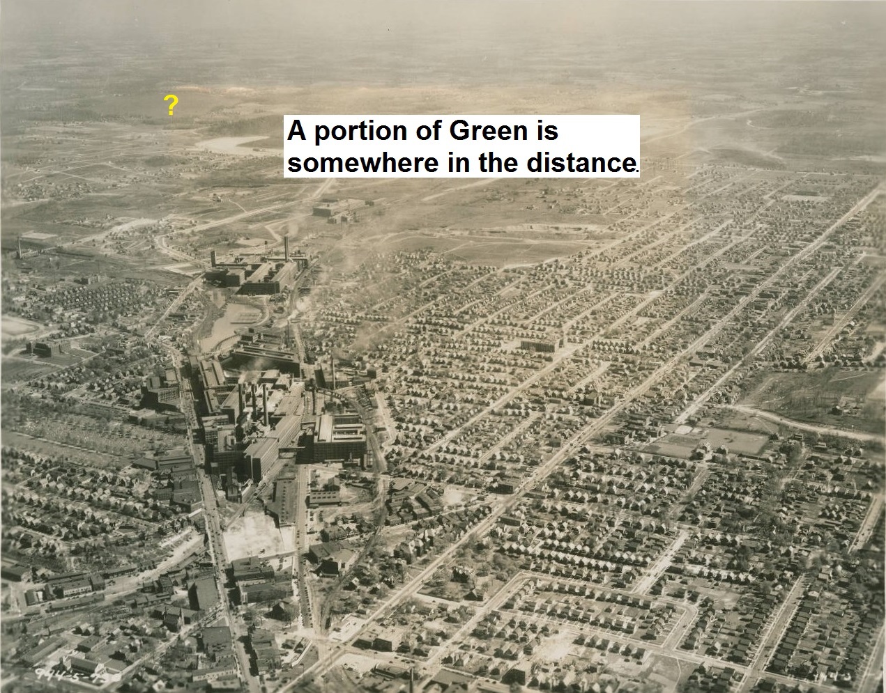 There are no objects in Green Township that can be seen in the distance of the old aerial photo,