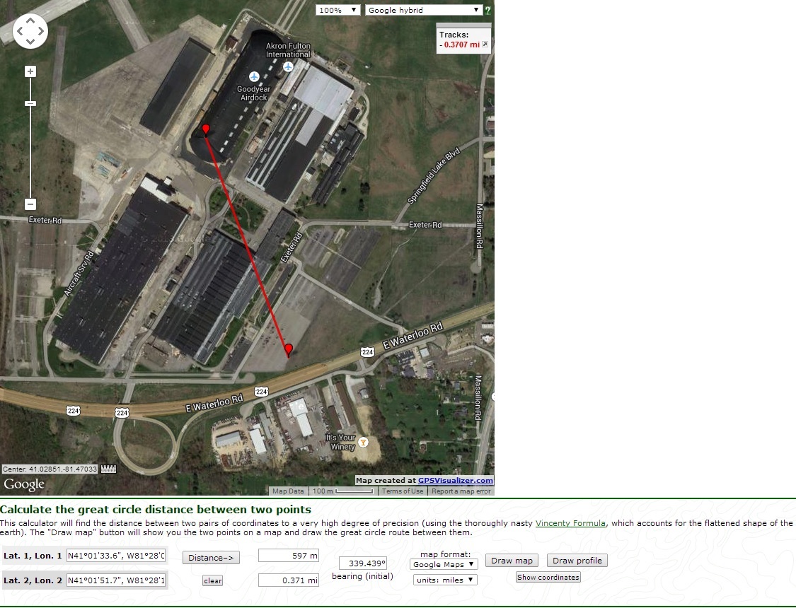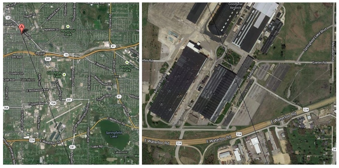 in Akron, Ohio. Specifically, at the south end point, it is located at: Latitude: N41°01'51.7", Longitude: W81°28'17.7", Elevation: 1,042 feet Mean Sea Level (MSL).