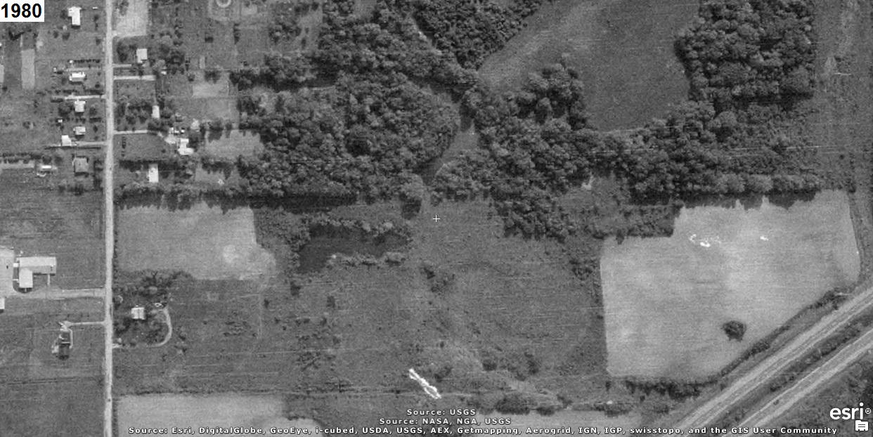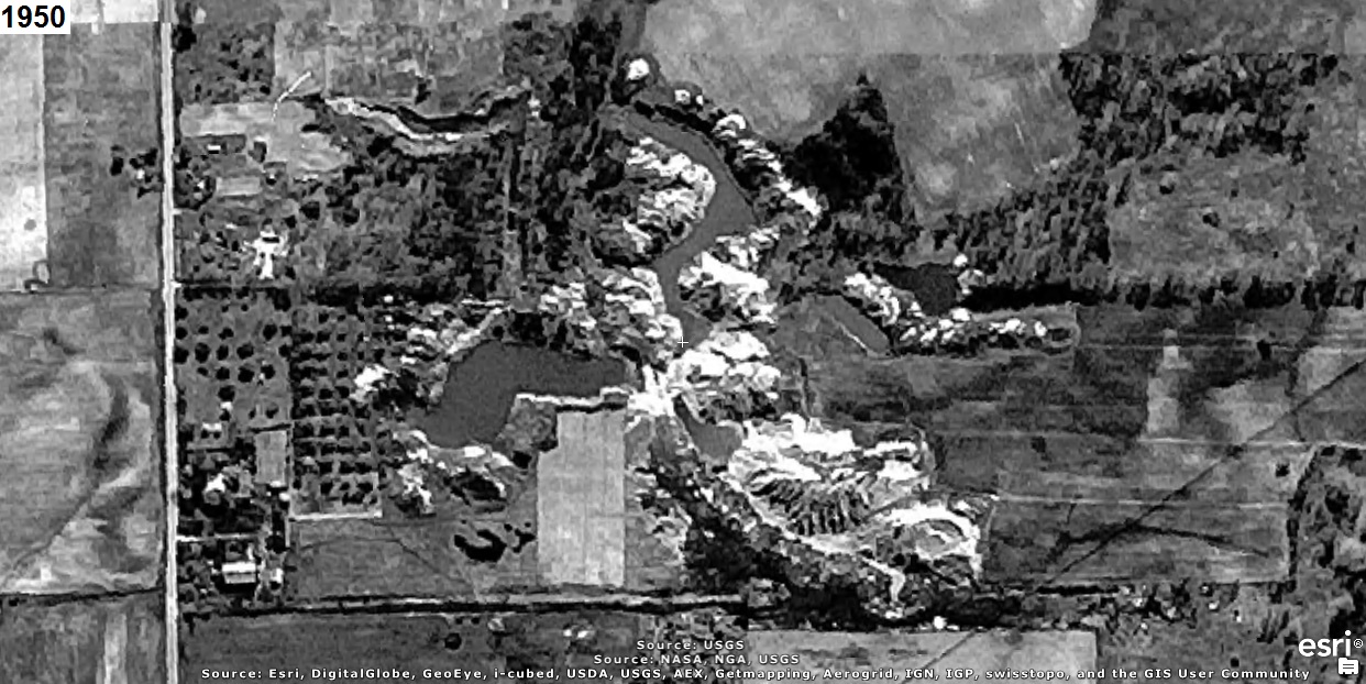 The 1934 aerial photo below shows the area before material was removed or deposited.