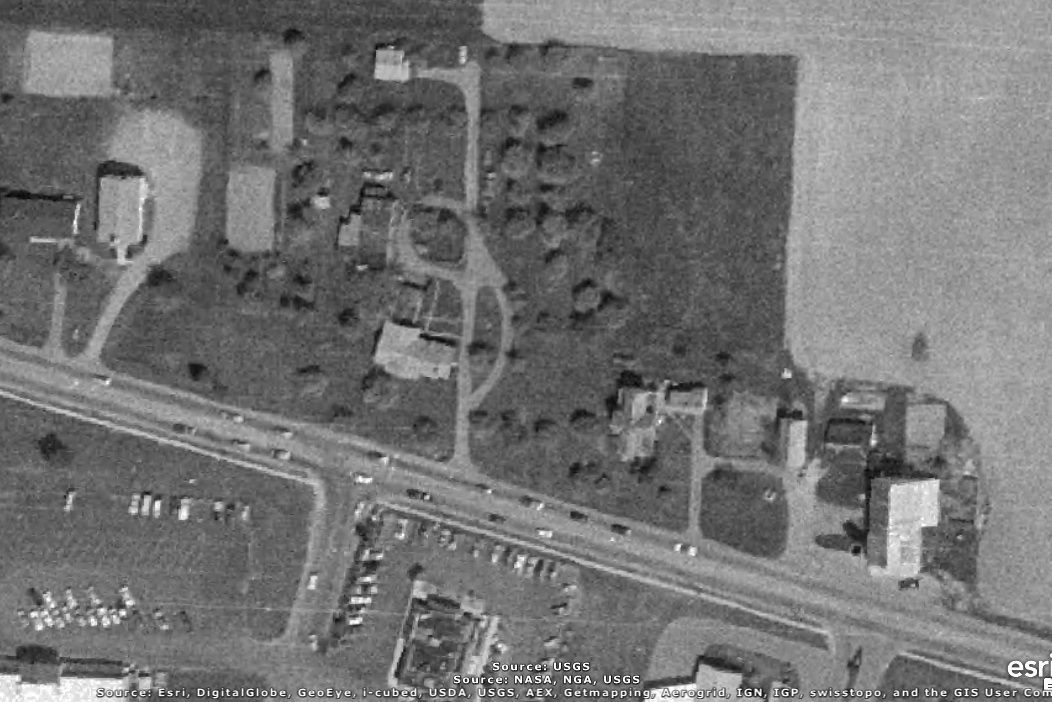The year that each aerial photo was taken is given in the upper left corner of the photo.