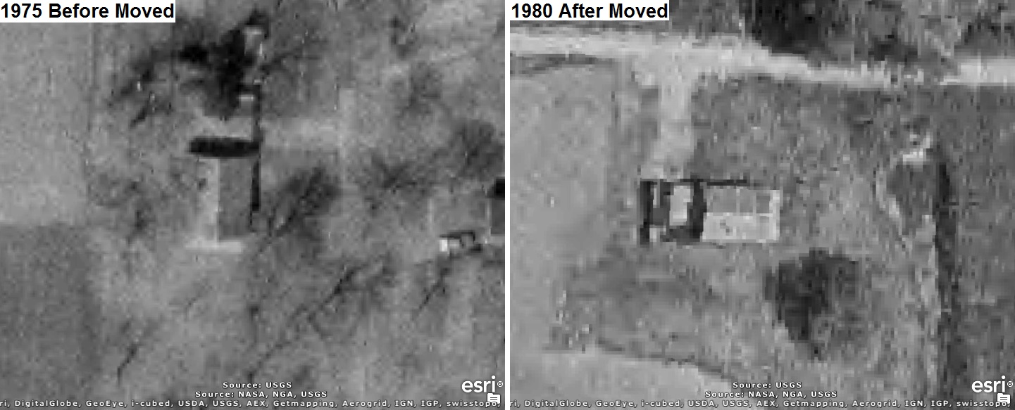 We know from 1975 and 1980 aerial photos that the schoolhouse was moved from the original location