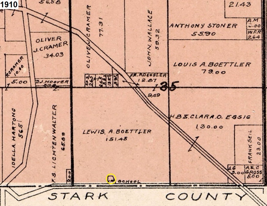 the schoolhouse located at the yellow circle, which is about half way between Massillon Road and