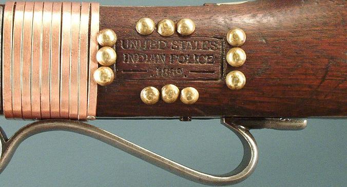 The left side of the stock is stamped: "UNITED STATES INDIAN POLICE -.1889.-" as shown in the photo below: