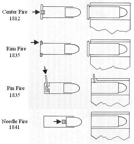 The information that follows gives the approximate date of invention and a graphic of each basic firearm ignition system. The animated graphics were designed and developed by Vik Nokhoudian. You may visit his web site HERE.