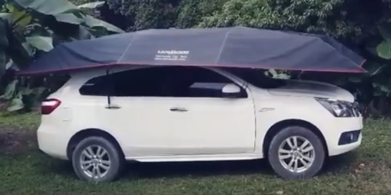 When the vehicle is facing the east, the least amount of vehicle surface area is struck by the most direct sunlight during the day. That is, as the sun rises in the east, only the front of the vehicle is struck most directly by the sun. And, as the sun sets in the west, only the rear of the vehicle is struck most directly by the sun.A Vehicle Tent/Umbrella/Canopy such as that shown below can be considered but those are only rated to withstand approximately 30 mile per hour winds: