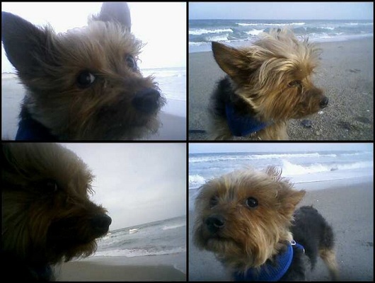 Below are photos of Spencer at Long Island Sound, New York watching the sun bathers and walking on the beach: