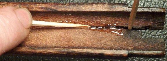 Apply glue as described and force glue into crack using toothpick as shown below: