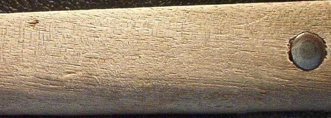 As shown below, lay the water saturated tip of a few layers of cloth on the dent and then apply the heated Soldering Iron to the cloth for 3 to 5 seconds. This produces steam that is forced into the wood that causes the wood fibers to swell and thus expand the compressed fibers thereby removing all or most of the dent. It may be necessary to steam the dent in this manner 10 to 100 times. This particular sharp dent was steamed approximately 100 times to remove as much of the dent that was possible.