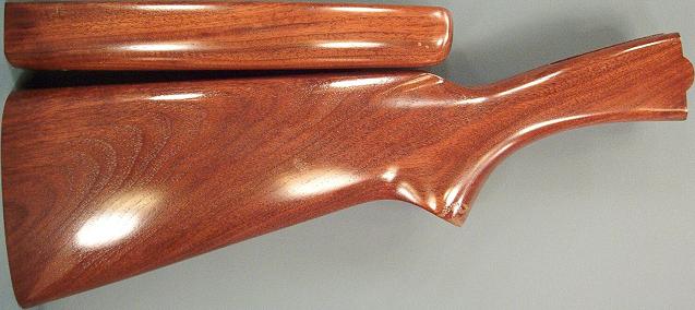 "Both finishes are penetrating, oil-based, hand-rubbed finishes. The Tung Oil Finish is derived from oil extracted from the tung nut blended with an alkyd varnish resin. The Antique Oil Finish is derived from linseed oil blended with an alkyd varnish resin. Both finishes create a natural feel and appearance to wood (protection lies within the wood grain not on top of the wood). Overall, the Antique Oil Finish is a more durable finish and will have a softer look to the finish."It is important to remember that once an Oil/Varnish Finish is applied, only that finish should be used to refresh/renew the finish. Do not apply an Oil Finish on top of an Oil/Varnish Finish because the Oil Finish will be repelled by the Oil/Varnish Finish and will result in a gummy finish.The photos below show the stock after being stripped as described at Gun Stock Stripping, having dents removed as described at Gun Stock Dent Removal, and having residual oil removed as described at Gun Stock Cleaning using an oven as the heat source: