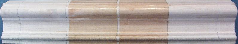 1. Zinsser Bulls Eye ShellacThe photos below are of a piece of Maple Hand Rail that has sharp contours (side), gradual contours (top), and no contours (bottom). There are four 3 inch sections that are treated as follows after sanding with 320 grit sandpaper before staining: